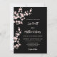 This elegant wedding invitation features dusty pink / pink blush cherry blossom branches on a black background.