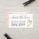 Makeup hair girly blush pink heart script font share the love professional referral card. the hearts are in faux gold foil.