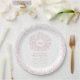 Wedding leaf monogram art wedding paper plates. Simple leaf design circling your own monogram initials in blush pink and grey on white. Other colours and matching wedding items available. © Original leaf drawing and design by Sarah Trett for www.mylittleedenweddings.com on zazzle.