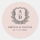 Blush Pink Crest Modern Monogram Wedding Classic Round Sticker
