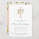 Blush Pink Cross and White Flowers | Girl Baptism Invitation