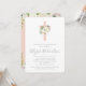 These beautiful baptism invitation features a light pink cross with watercolor ivory and white flowers.