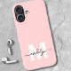 Personalised Blush Pink Initial Monogram Phone Case. Add a touch of elegance and femininity to your phone with this stylish personalised phone case. Featuring a soft blush pink background, a crisp white initial letter, and a sleek black script name, this design brings a luxurious, modern look to your everyday accessories. Ideal for sorority sisters, students, or professionals, this phone case makes a thoughtful gift for moms, friends, or anyone who loves chic and personalised items. Perfect for birthdays, holidays, or special occasions, it’s a beautiful combination of elegance and practicality that will elevate your phone’s style.