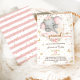 Watercolor Blush Pink Gold Elephant Baby Shower Invite. Cute sleepy elephant on the moon, with glitter details around, like stars and gold dots, shimmer butterflies, elegant script and watercolor roses. This invite is a mix of boho, modern, and elegant styles. Don't forget to discover the full collection.