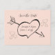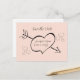 Simple sweet black calligraphy style hearts and an elegant font on a blush pink background and the happy couples names and date inside of a romantic heart with cupid's arrow through it. Easy to customise, just add your own details.