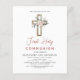 Celebrate a sacred milestone with our Blush Pink First Holy Communion Rose Greenery Invitation. Adorned with delicate blush pink roses and lush greenery, this invitation captures the essence of purity and reverence. Each detail is meticulously crafted to evoke a sense of tranquillity and spiritual grace, perfect for honouring this significant occasion. Whether it's a formal ceremony or an intimate gathering, the soft pastel hues and intricate floral details create a charming backdrop for commemorating this special moment. Customise the text to include essential details such as the date, time, and location, ensuring a warm and heartfelt invitation. With its elegant design and timeless appeal, our Blush Pink First Holy Communion Rose Greenery Invitation promises to create cherished memories for the guest of honour and their loved ones. Invite friends and family to share in the blessings of this sacred journey with an invitation that radiates love, faith, and grace.