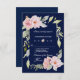 Blush Pink Floral Bloom Navy Blue Wedding RSVP