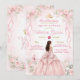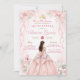 Celebrate her special milestone with this elegant blush pink Quinceañera invitation featuring soft watercolor florals, delicate bows, a gold crown accent, and a beautiful princess gown illustration.