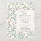 Delicate pastel blush pink flower buds and sage green leaves frame this elegant bridal shower invitation.