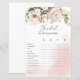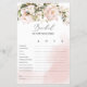 Modern chic bridal shower game Bridal Scattergories with blush pink blooming flowers with fresh greenery arrangement and soft pink watercolor background