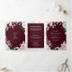 Blush Pink Floral Burgundy QR Code Wedding Tri-Fold Invitation