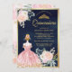 Blush Pink Floral Dress Navy Blue Gold Quinceanera Invitation
