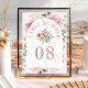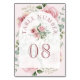 Elegant blush pink wedding table card featuring beautiful flowers.