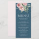 Elegant blush pink wedding menu featuring beautiful flowers.