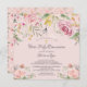 Beautiful pink floral with gold leaves first holy communion invitation with a coordinating floral back for an extra special touch.