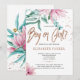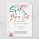 A modern glamourous spring or summer boy or girl gender reveal baby shower party invitation featuring watercolor blush pink magnolia flowers, green foliage, and eucalyptus leaves and a classy handwritten style calligraphy script. +++++++++++ Easy to personalise it with your details! ++++++++++ Suitable for modern floral glam themed baby showers, outdoor garden or summer backyard elegant baby gender reveal parties.