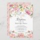Blush Pink Floral Gold Cross Baptism Invitation