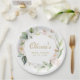 Blush Pink Floral Gold Geometric Frame Paper Plate