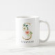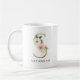Cute, elegant monogram coffee mug featuring the letter "S" in a faux gold foil style adorned with white and blush pink watercolor flowers and greenery. Personalise the coffee mug by adding your name or custom text.