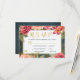 Romantic wedding RSVP with menu options featuring beautiul blush pink and peach roses and blooms, two small golden hearts and a golden frame on dark midnight navy blue chalkboard background. ----------- Ideal for spring or summer night | garden outdoor | vintage romantic themed wedding.