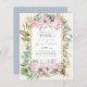 Pretty Watercolor Flowers in blush pink and dusty blue with sage green leaves and foliage feature on this modern wedding item.