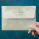 Elegant blush pink watercolor floral and sage green wedding envelope with a name and return address printed on the back flap in a modern script font. Contact us for help with customisation or to request matching or coordinating products.