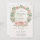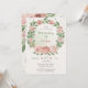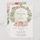 romantic blush pink flowers green leaves botanical wreath birthday party invitation