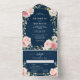 Blush Pink Floral Navy Geometric Botanical Wedding All In One Invitation