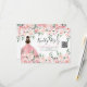 Blush Pink Quinceañera Party RSVP Enclosure Card: This elegant horizontal enclosure card is designed for digital RSVP convenience. The front features a customisable QR code, allowing guests to easily RSVP through your event website or form, with an additional spot to display a website URL. Soft blush pink watercolor roses and lush greenery gracefully line the top, creating a delicate and timeless look. A girl in a stunning pink sparkle gown on the left adds a charming, personal touch.