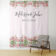 Beautiful, elegant and sweet wedding backdrop with bride and groom's name and custom text for date. The design can be customise on page, is make with blush pink background, with a garden of pink roses, and on the centre the text. Perfect for wedding guests photo-shoot on reception, welcome, ceremony or party.