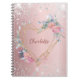 Blush pink floral silver glitter dust monogram notebook