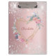 A blush pink background. Faux silver glitter as decoration. A golden heart decorated with pink flowers. Personalise and add a name. The name is written a modern hand lettered script.