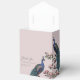 These Blush Pink Floral Teal Peacocks and Magnolia Flowers Favour Boxes feature hand-drawn blue and teal peacocks perched on Magnolia tree branches in full bloom in black ink, against an elegant blush pink background. Personalise with your details by clicking on "Personalise this template" on the product page. Choose colour of ribbon. All text is editable.