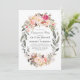 Blush pink watercolor flowers, greenery wreath engagement party invitations