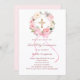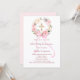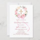 White background, decorated with watercolored pink and white flowers in a wreath and a golden cross. A pink bow. Personalize and add a name and details.