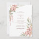 A beautiful watercolor wedding invitation featuring green leaves with mauve pink flowers. Customise the wording with the online editor. Change the colour on the back side to any colour you prefer.