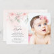 Invite friends and family in style and set the tone for your special day with this elegant baptism invitation. Design features blush pink watercolor flowers and greenery on pale pink background.