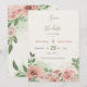 romantic blush pink flowers green leaves botanical save the date card