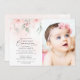 Invite friends and family in style and set the tone for your special day with this elegant first holy communion invitation. Design features blush pink watercolor flowers and greenery on pale pink background.