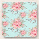 Blush Pink Flowers on Light Blue Coaster