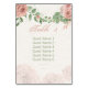 blush pink flowers sage green leaves seating chart table number card