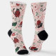Hand-drawn in black ink by Nathalie Portet, these funny socks for cat-lovers feature 4 playful kittens making a tangled mess with Christmas coloured yarn. The ends of each ball of yarn spell out "love". Search for the hidden mouse tying bows onto candy canes and kitty paw stockings!