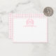 Blush Pink Gingham Floral Crest Monogram Note Card