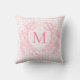 Blush Pink Gingham Floral Crest Monogram Throw Pillow