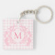Blush Pink Gingham Floral Crest Monogram Keychain