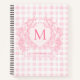 Blush Pink Gingham Floral Crest Monogram Recipe Notebook