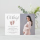 This girl's baby shower invitation is decorated with Oh Baby! in stylish typography and cute blush-pink glitter baby feet. Easily customisable with your photo and details. Original Design © Michele Davies.