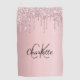 A blush pink metallic looking background decorated with faux glitter drips, paint dripping look. Personalise and add a name, your monogram initials. The name is written with a hand lettered style script.