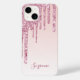 An elegant, girly and glam phone case. Faux pink glitter drip, paint drip. Chic rose gold ombre background. Insert your name, written with a modern hand lettered style script. Dark rose gold coloured letters.