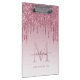 Elegant Modern Glam Blush Pink Dripping Glitter Drips Sparkle Girly Monogram Script Clipboard